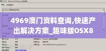 4969澳门资料查询系统为澳门地区的信息查询提供了极大的便利,而趣味版OSX8.13的推出,更是为这一系统增色添彩。通过本文的介绍,相信您已经对这一系统有了更深入的了解。在未来的日子里,让我们一起使用4969澳门资料查询系统,快速产出解决方案,为澳门地区的发展贡献力量。